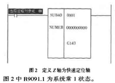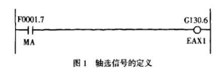 為使Z軸作為PMC軸有效,需要設定Z軸的PMC選擇信號EAXI為l。相應地址為G136.0,編人梯形圖(圖I)。圖l中MA為系統準備好常l狀態。