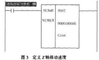 (2)軸控制進給速度信號EIFOA--EIF15A相應地址為G144和G145兩個字節,定義PMC軸快速移動速度,即Z軸的進給速度。梯形網編程如圖3所示。