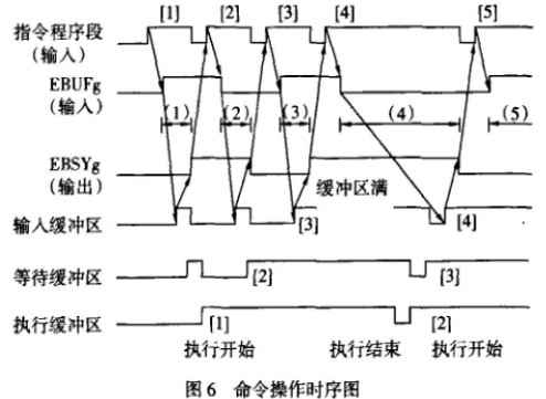 (1),(2).(3),(4).(5)在這些間隔期間,新程序段不能發出(當EBUFA和EBSYA在不同的邏輯狀態時)。參見表2的介紹。從上可見,一個完整操作(一個程序段)的執行需要軸控制命令閱讀信號EBUFA和軸控制命令閱讀完成信號EBSYA邏輯狀態的配合一致。
