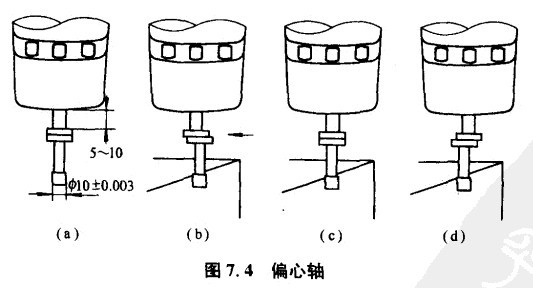 如圖7.4(a)所示,將偏心鈾夾持在機床主軸上,如10mm測定端處于下方。