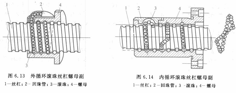 數控沖床滾珠絲杠副可分為內循環及外循環兩類。圖6. 13所示為外循環螺旋槽式滾珠絲杠劇,在螺母的外圓上鏡有螺旋槽,并在螺母內部裝上擋珠器,擋珠器的舌部切斷螺紋滾道,迫使滾珠流入通向螺旋槽的孔中而完成循環。圖6. 14所示為內循環滾珠絲枉副,在螺母外側孔中裝有接通相鄰滾道的反向器,以迫使滾珠翻越絲杠的齒頂而進入相鄰滾道。通常在一個螺母上裝有三個反向器(即采用三列結構),這三個反向器彼此沿螺母圓周相互錯開1200,軸向間隔為4/3-7/3P(P為螺距);有的裝兩個反向器(采用雙列結構),反向器錯開1800,軸向間隔為3/2P。