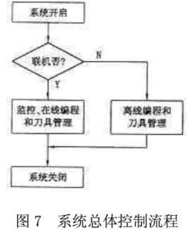 系統(tǒng)的總體控制流程如圖7所示。系統(tǒng)開啟,上位機與控制機、沖床聯(lián)機后,即可進行沖床監(jiān)控,同時進行在線編程刀具管理;也可單獨進行離線編程和刀具管理。