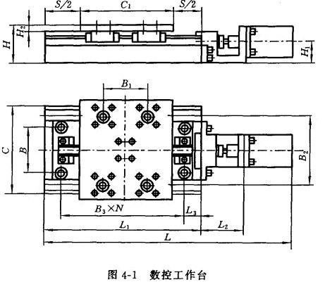 數控工作臺是數控沖床機械中的一種附件。如圖所示,將兩個數控工作臺組裝在一起后,可以構成一臺X-Y工作臺,實現兩個坐標的定位和連續軌跡運動。也可以把數控工作臺看成數控沖床的一個進給運動部件,使其執行某一個固定坐標系的進給運動。數控工作臺是由底座、導軌、滾珠絲杠螺母副、電機座、絲枉支承機構、拖板、行程開關、防護翠等部件組成的。數控工作臺的裝配完成后,姿求運動平穩;拖板運行到不同位置時,空載推動力一致拖板移動的直線性、拖扳平面與移動方向的平行度、拖扳平面與底座底面的平行皮都必須符合規定的技術指標。拆裝前后要進行檢查登記。