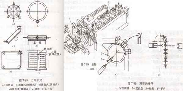 可分為:普通刀庫(簡稱刀庫)和主軸箱庫(如圖7-89所示)二種。