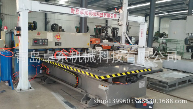 我公司還生產上料機械手,后碼垛設備,通過這些裝置可以組成剪切自動生產線,整個剪切過程無人化值守,真正實現剪切的全自動化生產。上料機械手自動上料到送料平臺,夾鉗夾持板材自動剪切,剪切后的條料由后碼垛設備進行碼垛,整個生產過程都有相關的檢測系統進行檢測,確保生產過程的順暢進行,由節省人工到替代人工。